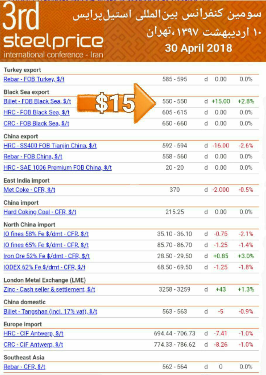 شمش فولاد در چین با ۵ دلار کاهش ۵۶۳ دلار معامله شد.