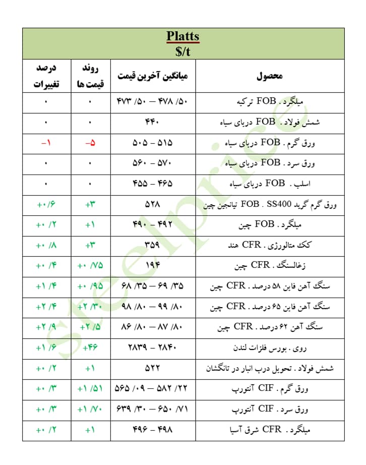 شمش فولاد در چین با ۱ دلار افزایش ۵۲۲ دلار معامله شد.