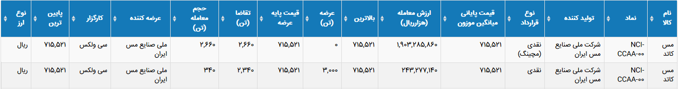 قیمت جدید معاملاتی مس برای هفته جاری اعلام شد.