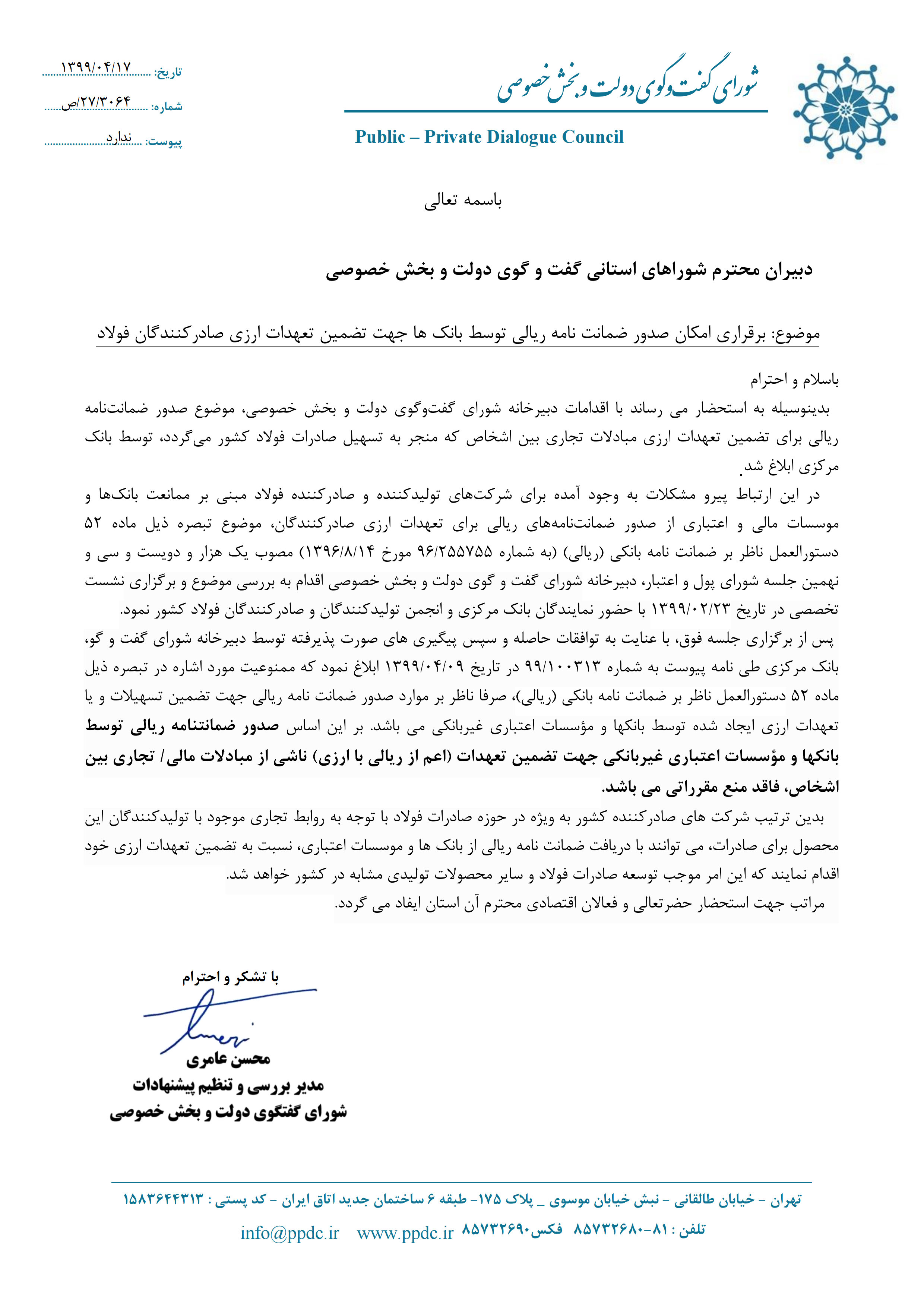 فولاد اطلاعیه صدور ضمانت نامه ریالی توسط بانک ها جهت تضمین تعهدات ارزی صادرکنندگان فولاد در 22 تیر 1399 0 740 بازنشر 0 740 بازنشر PrintTelegramپست الکترونیکLinkedinPinterestفیسبوکTwitterWhatsApp