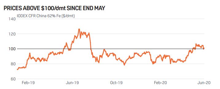 اگرچه در سال های گذشته سنگ آهن همانند یک محصول پر جهش، قیمت خود را در محدوده های بالا و پایین نوسان می داد و از ۷۰ دلار خود را به بالای ۱۲۰ دلار می رسانید اما از اواسط سال ۲۰۱۹ تا ژوئن سال جاری با بازه ی تناوبی ۲۰ دلاری، بین ۸۰ تا ۱۰۰ دلار معامله شده است.
