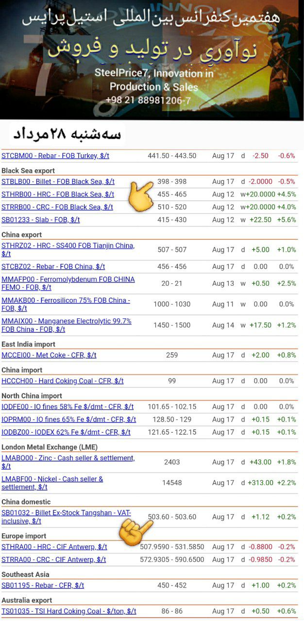 نرخ شمش روى به ۲۴۰۰دلار رسید/افزایش قیمت سنگ آهن ادامه دارد