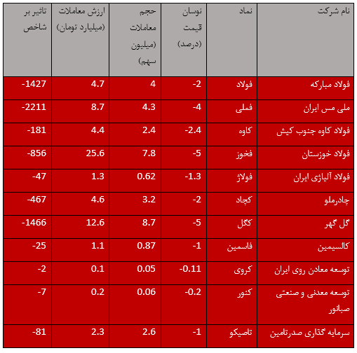 با این عملکرد شاخص گروه معدنی فعال در بورس، کاهش ۲.۳۵درصدی را در کارنامه خود ثبت کرد.