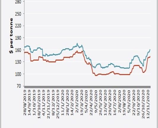 گفتنی است که با شروع واعمال ممنوعیت ها، هر دو قیمت برای فوب استرالیا و سی اف ار چین تا اواخر اکتبر با کاهش همراه بود که البته افت فوب استرالیا تا روزهای اخیر همچنان ادامه دار ولی سی اف ار چین با رشد متوالی به بالاترین سطح خود در ۸ ماهه اخیر رسیده است.