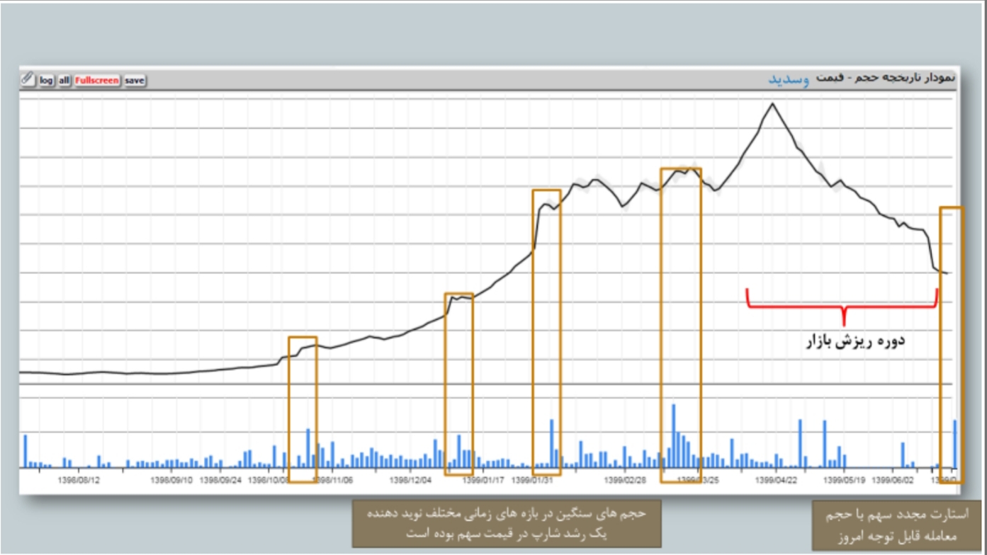 در سیر تاریخی و بررسی ارزش معاملات وسدید به چند الگوی بسیار مهم و کلیدی می‌توان دست یافت؛ که به نوعی در بسیاری از سهم‌های پربازده دیگر نیز معمولا تکرار می‌شود. یکی از این شاخص‌ها، میزان حجم معاملات سهم می‌باشد که هرگاه این نشانگر‌ با حجم قابل توجهی نسبت به میانگین میان مدت سهم همراه باشد؛ حاکی از امکان رشد سریع و به اصطلاح شارپی در سهم بوده است.