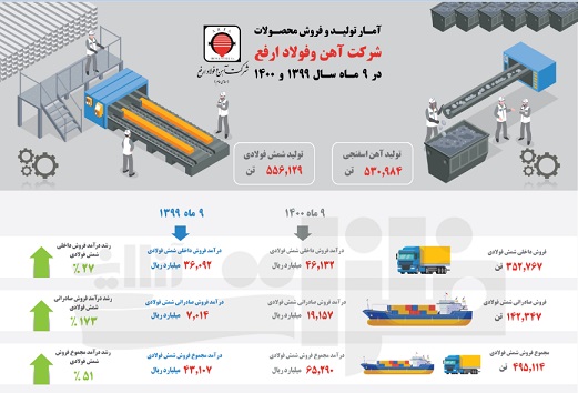 همچنین ۱۴۲ هزار و ۳۴۷ تن از شمش فولادی تولیدی این شرکت روانه بازارهای صادراتی شد و درآمدی هفت هزار و ۱۴ میلیارد ریالی نصیب این شرکت کرد.