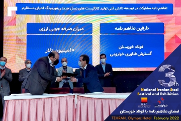در راستای توسعه همکاری های مستمر شرکت دانش بنیان گسترش فناوری خوارزمی و فولاد خوزستان، پیشگام در حمایت از بومی سازی در صنعت فولاد، تفاهم نامه همکاری با موضوع “مشارکت در توسعه دانش فنی کاتالیست های نسل جدید ریفورمینگ احیاء مستقیم” در خلال سومین جشنواره فولاد بین طرفین امضا شد.پیش بینی می شود اجرای این تفاهم نامه ۱۰ میلیون دلار صرفه جوئی ارزی بهمراه داشته باشد.