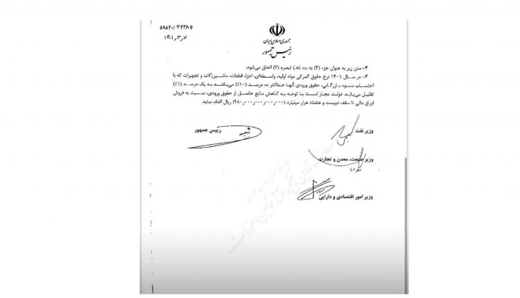 این مهم با امضای وزرای نفت، صمت و اقتصاد و رییس جمهور، به عنوان جزء (۳) به بند (ه) تبصره (۷) الحاق شد.