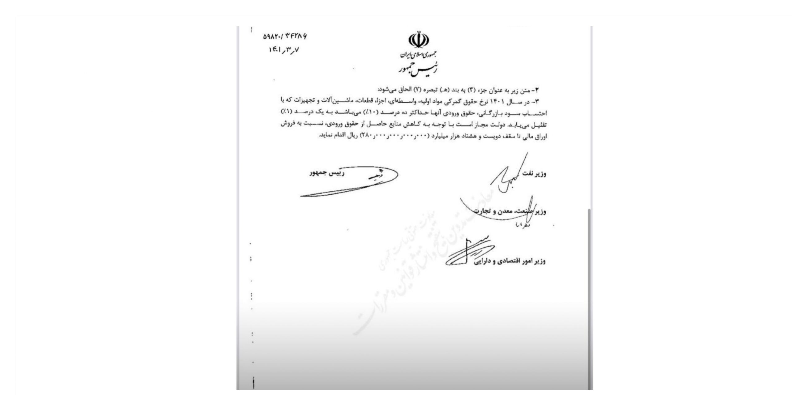 این مهم با امضای وزرای نفت، صمت و اقتصاد و رییس جمهور، به عنوان جزء (۳) به بند (ه) تبصره (۷) الحاق شد.