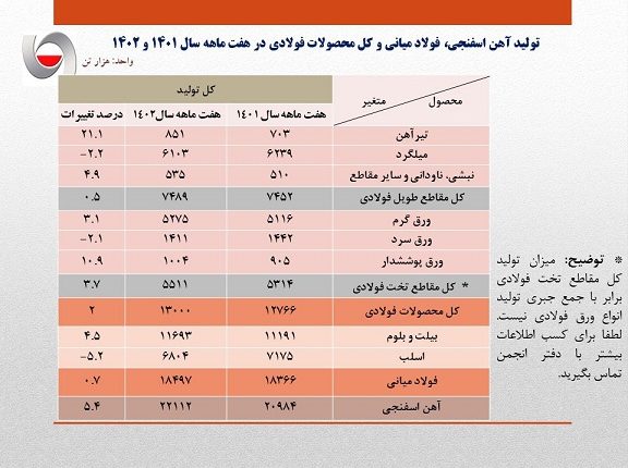 تولید ۷ ماهه فولاد ایران در سطح پارسال/جزئیات کامل تولید فولاد میانی، محصولات فولادی و آهن اسفنجی