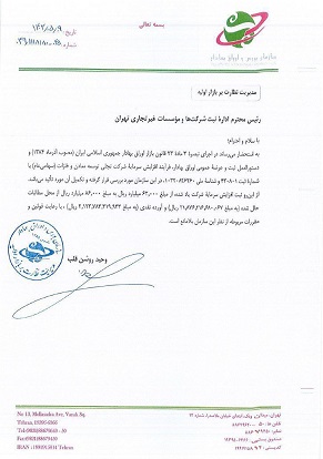 در این خصوص در نامه ای به رییس اداره ثبت شرکت ها و موسسات غیرتجاری تهران آمده است: در اجرای تبصره ۳ ماده ۲۳ قانون بازار اوراق بهادار جمهوری اسلامی ایران (مصوب آذر ۱۳۸۴) و دستورالعمل ثبت و عرضه عمومی اوراق بهادار، فرآیند افزایش سرمایه شرکت تجلی توسعه معادن و فلزات در این سازمان مورد بررسی قرار گرفته و تکمیل آن مورد تایید است. از این رو ثبت افزایش سرمایه شرکت یاد شده از مبلغ ۶۲۰۰۰ میلیارد ریال به مبلغ ۸۶۰۰۰ میلیارد ریال از محل مطالبات حل شده و آورده نقدی با رعایت قوانین و مقررات مربوطه از نظر این سازمان بلامانع است.