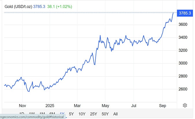 معدن۲۴: بهای جهانی طلا با ثبت رکوردی جدید از مرز ۳۷۸۶ دلار در هر اونس گذشت؛ رشدی که تحت تاثیر انتظار برای کاهش بیشتر نرخ بهره آمریکا و تضعیف ارزش دلار رقم خورد.
