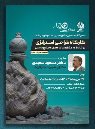 معدن۲۴- گروه رسانه ای معدن۲۴ با همکاری مشاوره مدیریت سبا، کارگاه طراحی استراتژی در شرایط عدم قطعیت در معدن و صنایع معدنی را برگزار میکند.