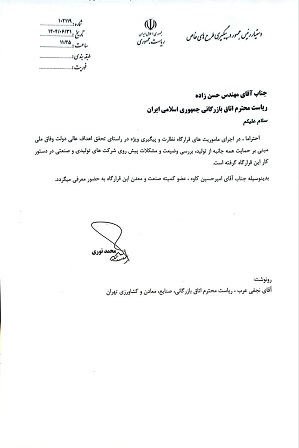به گزارش معدن۲۴، این موضوع طی نامه ای از سوی محمد نوری، دستیار رئیس جمهور در پیگیری طرحهای خاص به اطلاع رئیس اتاق بازرگانی ایران رسیده است.