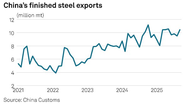 بسیاری از فعالان بازار پیش‌بینی می‌کنند که صادرات فولاد چین در ماه اکتبر مجدداً کاهش یابد، اما در مجموع، حجم صادرات در سه‌ماهه چهارم سال جاری می‌تواند در سطوح تاریخی بالا باقی بماند.