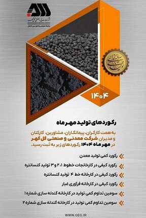 معدن۲۴- شرکت معدنی و صنعتی گل گهر در مهرماه ۱۴۰۴ موفق به جابهجایی ۶ رکود جدید شد.