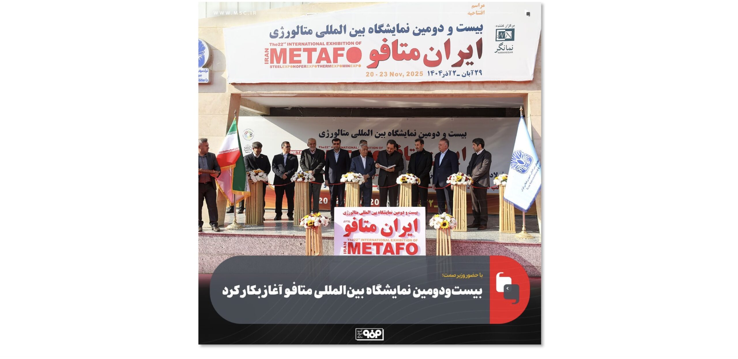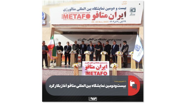 معدن۲۴:بیستودومین نمایشگاه بینالمللی متالورژی (ایران متافو) صبح امروز ۲۹ آبانماه با حضور اتابک، وزیر صنعت، معدن و تجارت، سمیعینژاد، معاون وزیر و رئیس هیأت عامل ایمیدرو، زرندی، مدیرعامل گروه فولاد مبارکه در محل دائمی نمایشگاههای تهران آغاز بکار کرد.