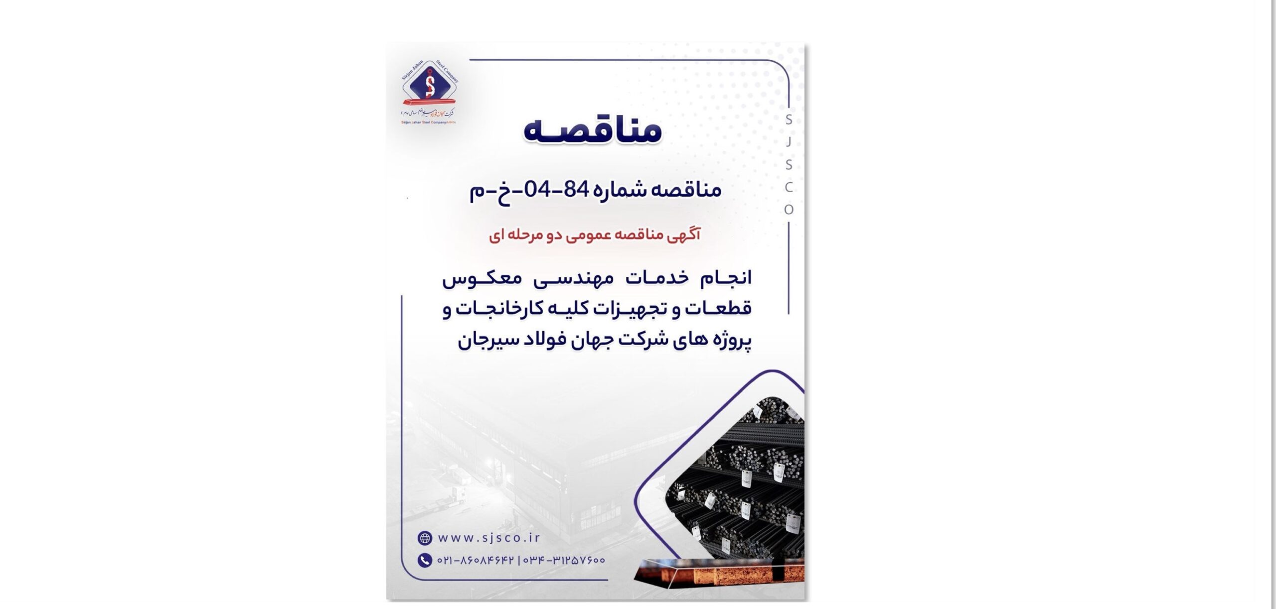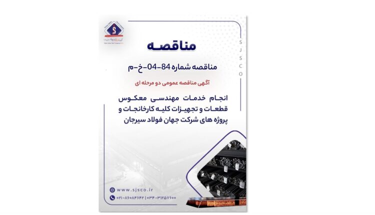 آگهی مناقصه عمومی دو مرحله ای ” انجام خدمات مهندسی معکوس قطعات و تجهیزات کلیه کارخانجات و پروژه های شرکت جهان فولاد سیرجان”