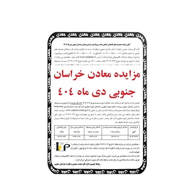 آگهی مزایده محدوده های اکتشافی ،گواهی کشف و پروانه های بهره برداری معادن خراسان جنوبی دی ماه ۱۴۰۴