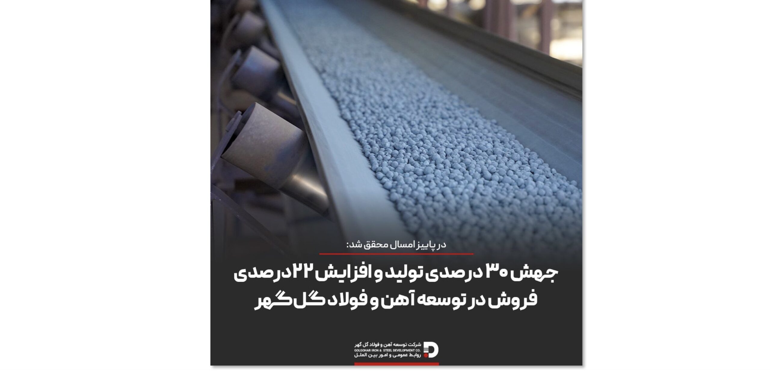 معدن۲۴:در سهماهه پاییز امسال، شرکت توسعه آهن و فولاد گلگهر عملکردی موفق در حوزه تولید و فروش به نمایش گذاشت و نسبت به مدت مشابه سال گذشته، رشد ۳۰ درصدی تولید و افزایش ۲۲ درصدی فروش را محقق کرد.