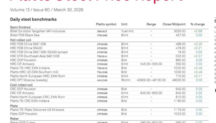 میلگرد فوب ترکیه ۵۹۵ دلار در تن معامله شد.