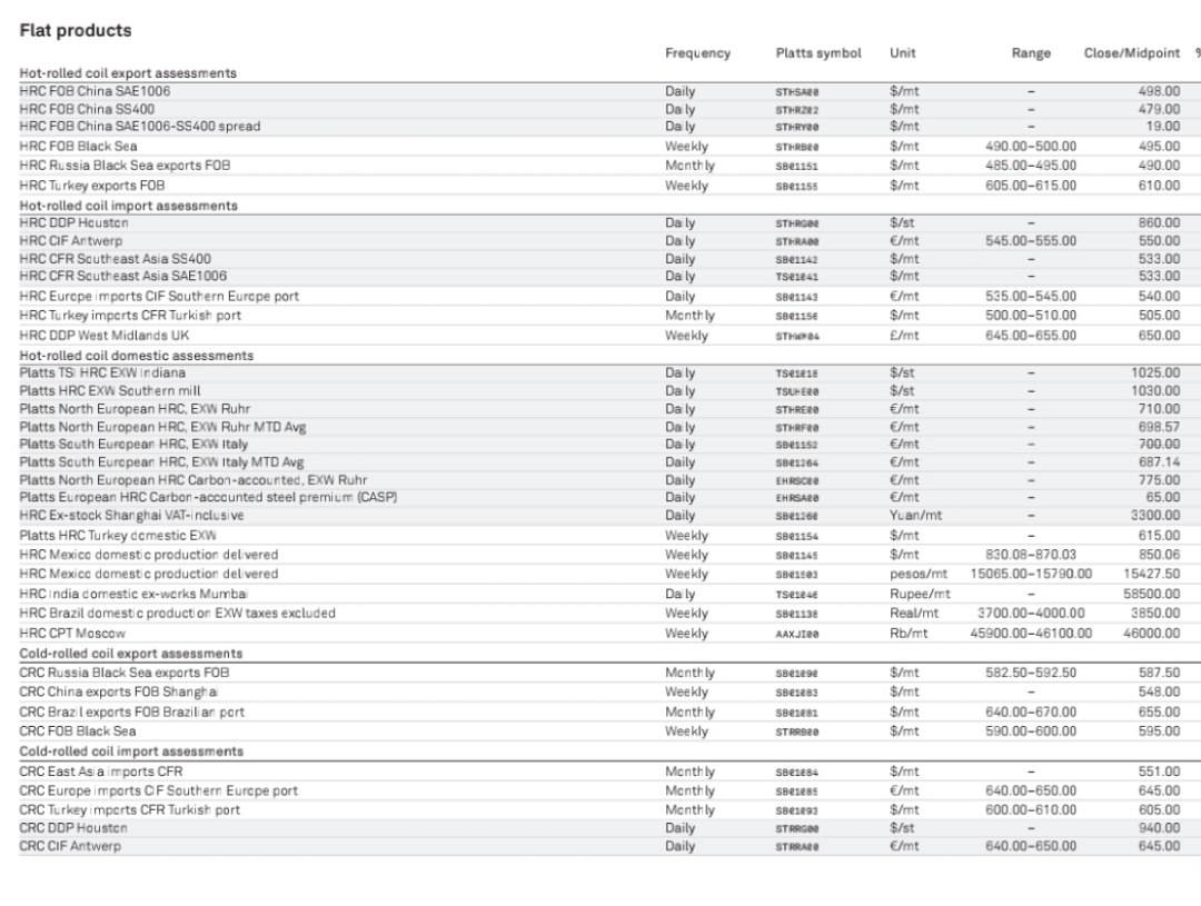 آخرین قیمت محصولات فولادی مناطق مختلف