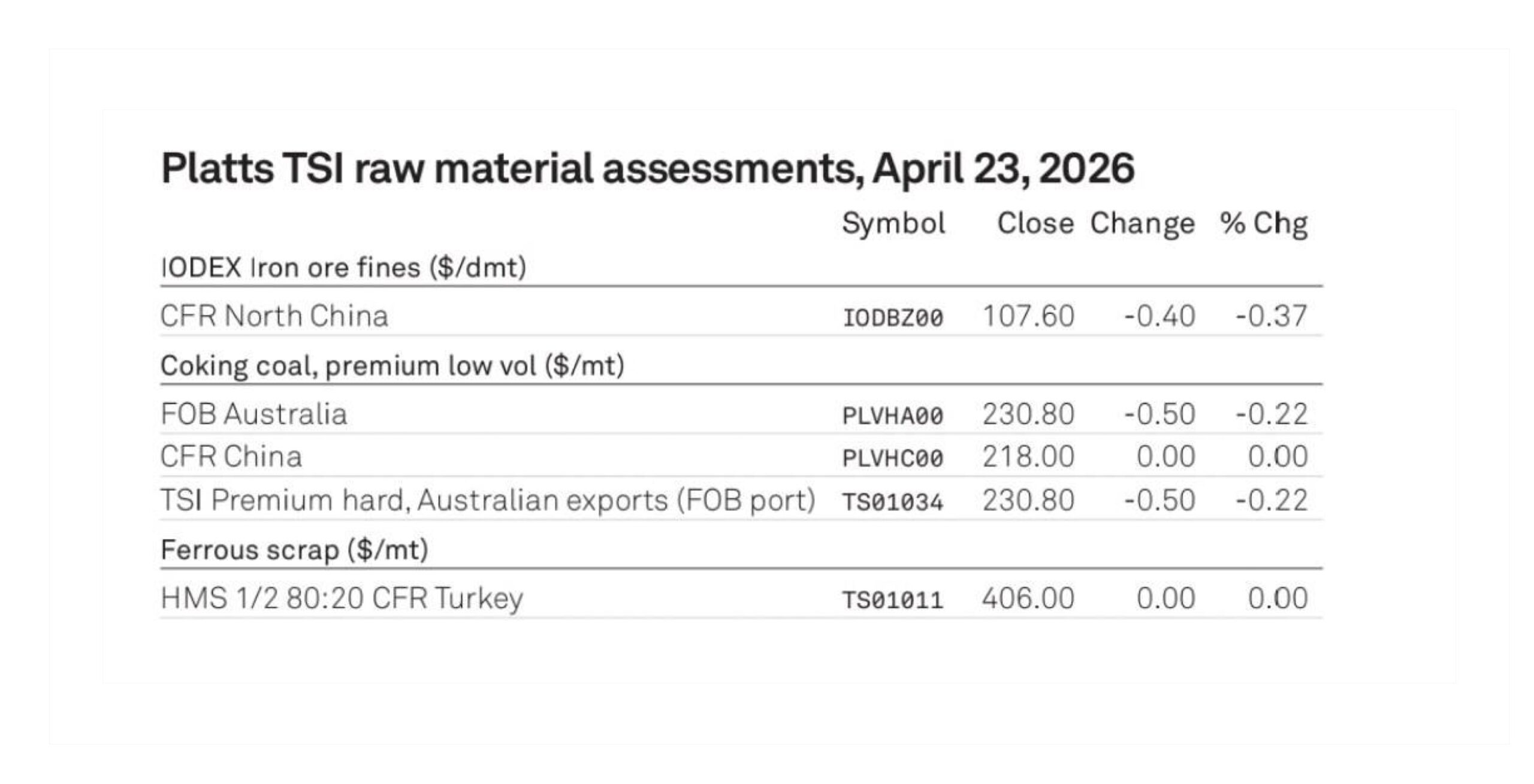 به گزارش معدن۲۴، سنگ آهن ۶۲ درصد cfr چین با کاهش ۰.۴ دلاری معادل ۱۰۷.۶۰ دلار در تن قیمت خورده است.