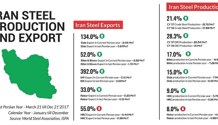 Iran one of the largest steel producer in MENA region has produced 21.70 MnT of Crude Steel in CY’17. Iranian steelmakers aim to increase crude steel output capacity to 55 million tons per till 2025, as per the targets set in the 20-Year Vision Plan (2005-25).